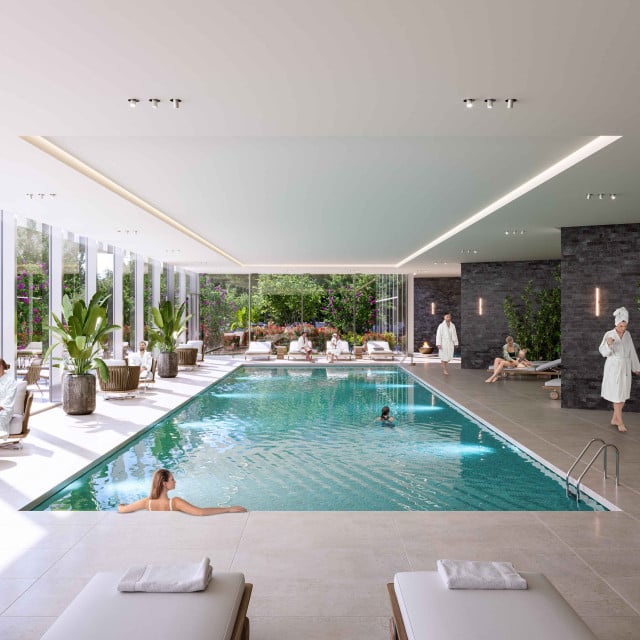 Just as bonaca (calm sea) is synonymous with the serene, peaceful sea that every sailor dreams of, so will this touch of luxury and comfort be your oasis of tranquillity in a dynamic urban environment. All you need to do is relax on your balcony, immerse yourself in peace, and watch the play of light on the river. You can also descend into the lavish inner courtyard, designed like a huge park, along with a children’s playground, a resting area under the trees, a running path, and diverse greenery. The highlight of the ambience is the 18-meter pool, which, along with its accompanying spa facilities, a modern gym, and sports amenities for children, is located on the ground floor of the building. The pool faces the new luxury street and the inner courtyard, so it is surrounded by greenery.