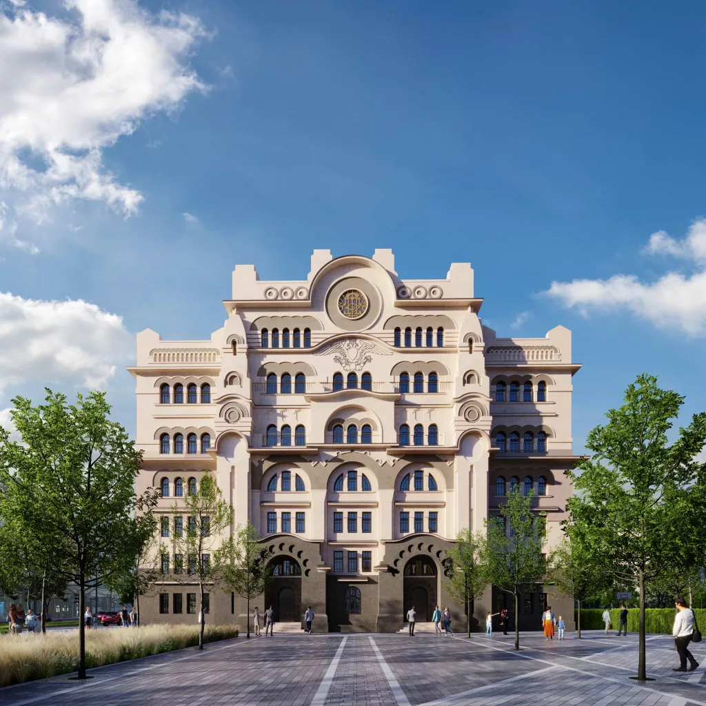 The conceptual solution for the reconstruction of the monumental building on Sava Square foresees the removal of the existing building, and the building with a facade renovated according to Korunovic’s original drawings will be built instead. This means that Belgrade will get back one of the most beautiful pre-war buildings, in its original dimensions and with an impressive original decorative facade. With the help of archival documentation and authentic photographs, even details that were not on the drawings were reconstructed.