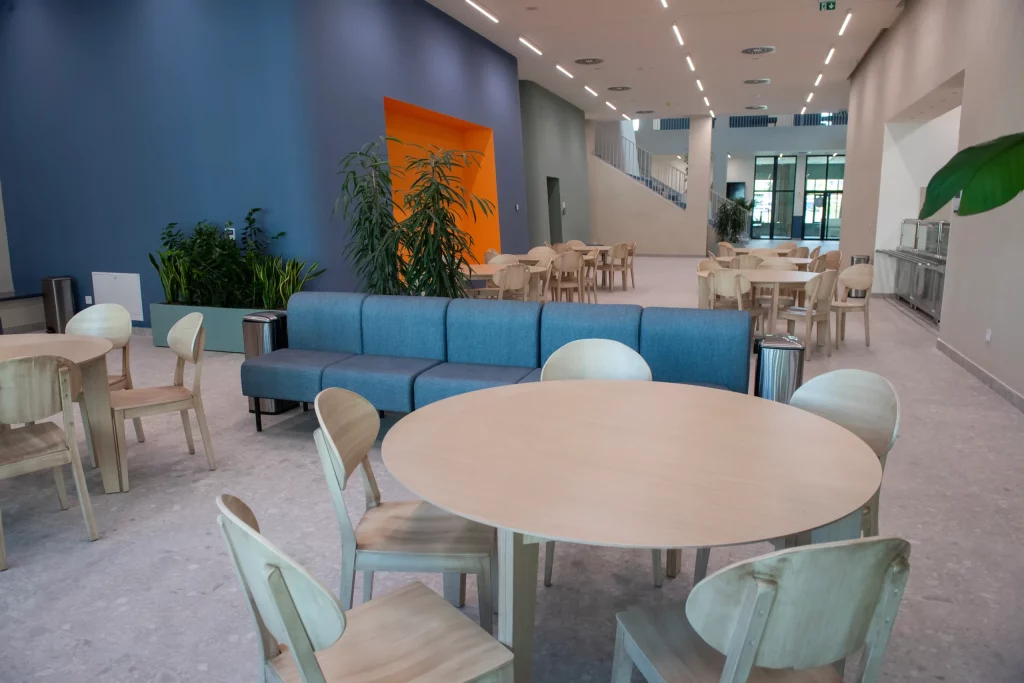 In addition to eight main and six subject classrooms, the school also has three specialised cabinets: one for physics, chemistry and biology, another for technique and technology and the third for informatics and computer science. Within the library, there is a multimedia room, and a mini botanical garden with selected varieties from all continents will be available to the students.