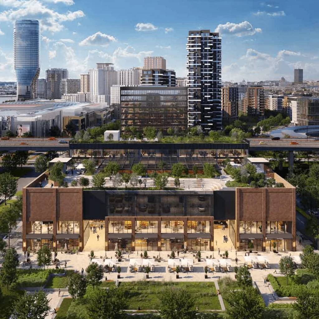 The facility, which combines warm materials and lush greenery, is designed to give you a unique enjoyment experience. Indulge in shopping and socializing in the sunny main lobby, or take a break and relax at the top of the building, where the green roof offers a fantastic view of the entire city panorama.