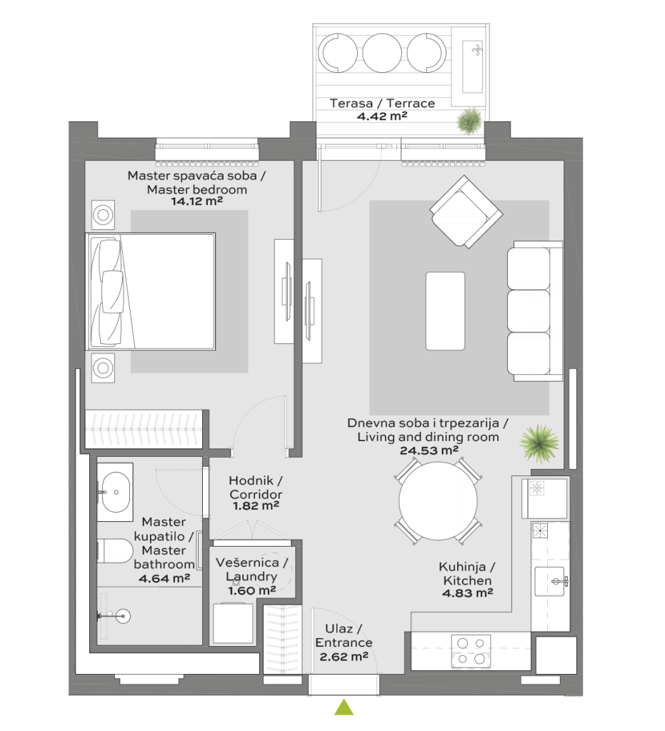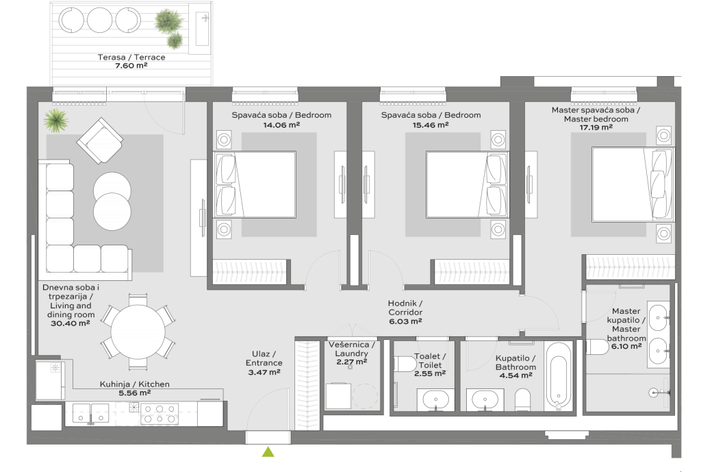 The Elements complex represents the best of modern city life, where lifestyle, quality construction and first-rate location meet. The entire complex possesses specific geometry, which is by almost half of its length comfortably positioned across the Sava Park, offering a unique pleasure to BW Eterna’s residents. Such surroundings represent ideal ambience for both peaceful and dynamic life in metropolis.