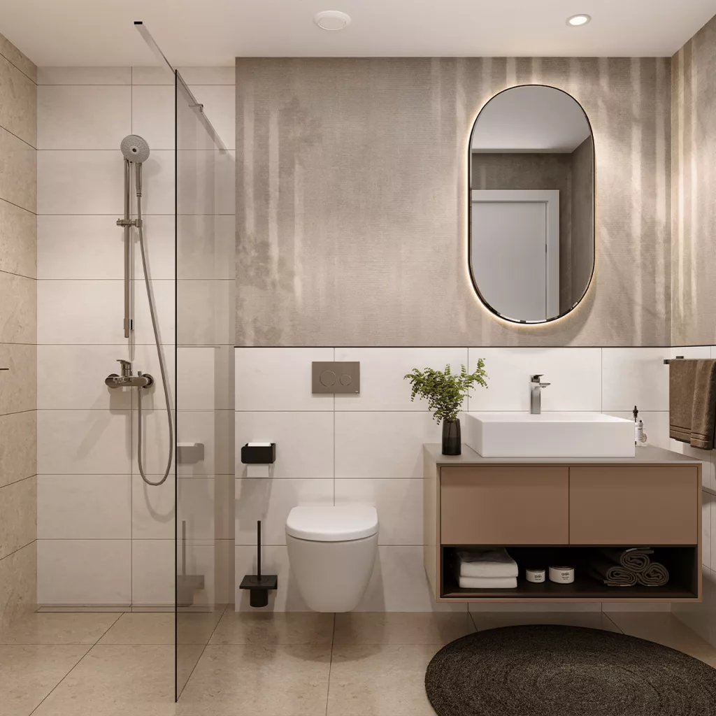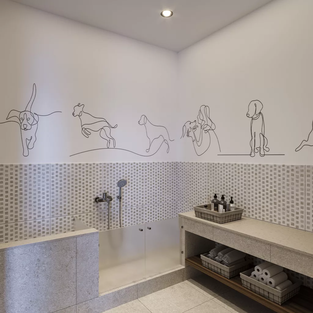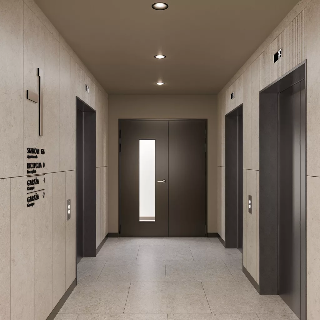 Access to the entrance lobby is planned both from the public street with traffic and from the inner courtyard, and it will have a reception, security, a special area for mailboxes, and a corner for the hygiene of your pets. The residential entrances are emphasized through the architectural solution, while the unique floor and organization of the corridors give the feeling of a minor, immediate neighbourhood.