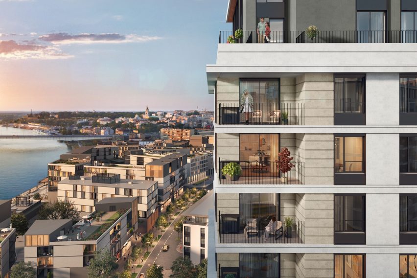 Within a wider context of the Belgrade Waterfront, residents can enjoy a green environment with landscaped communal spaces between buildings building.