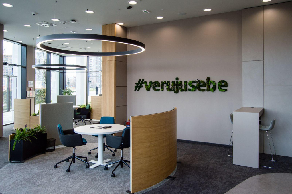 Recently, the Erste Bank network has become richer with a new Belgrade branch located in the BW Metropolitan building at the beginning of Woodrow Wilson Boulevard, number 4a. This modern branch is designed according to the latest standards and is primarily intended for financial advising. It is designed to give clients more time and space to discuss their financial plans with advisors in a comfortable and pleasant environment.