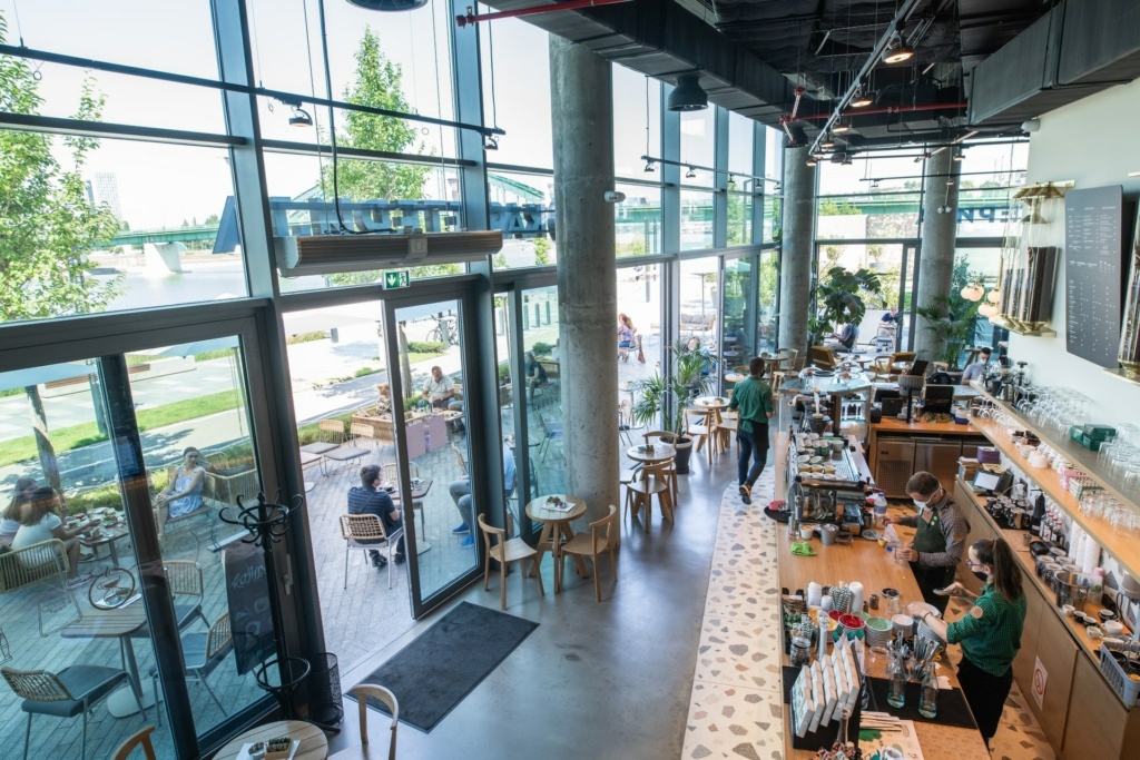 Gosti Kafeterije u Belgrade Waterfront-u se svakog jutra mogu razbuditi uz ukuse Indija ili Brazil espresa, poboljšati produktivnost uz ukuse Kolumbije, Kenije ili Etiopije, uživati u specijalno pripremljenim blendovima i predivnom pogledu, ili završiti dan uz bezkofeinske napitke i odraz grada u reci.