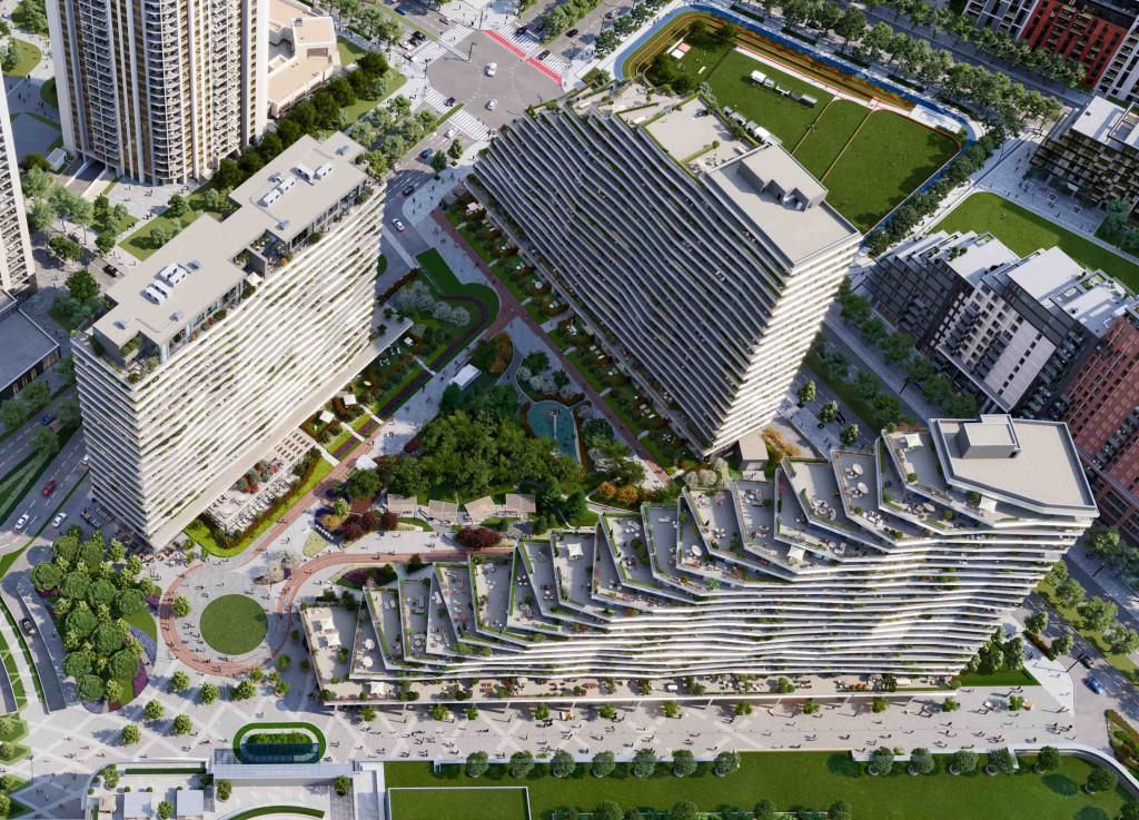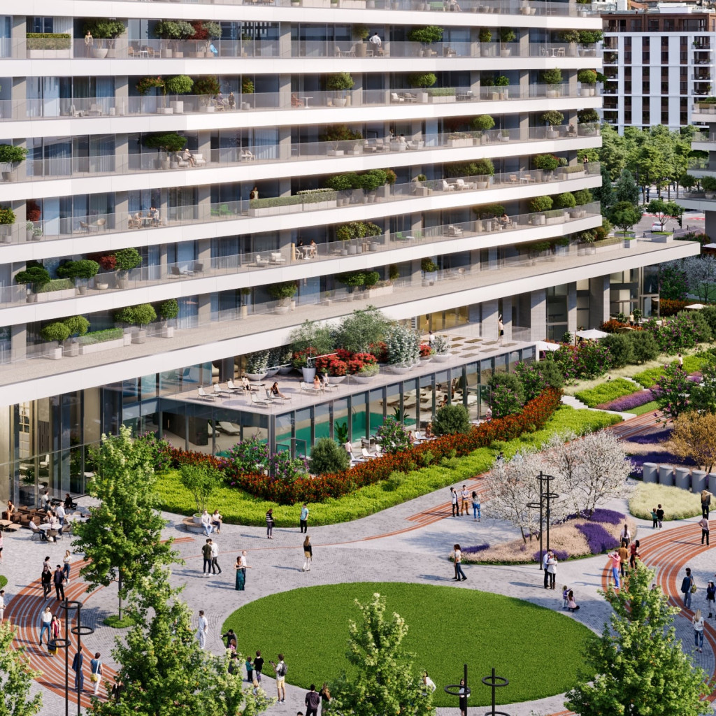 Zgrada je deo kompleksa koji se može pohvaliti prostranim unutrašnjim dvorištem, uređenim kao pravi zeleni raj. Ovo dvorište sadrži dečije igralište, stazu za trčanje, i brojna mesta za odmor ispod krošnji drveća. Centralni deo dvorišta posvećen je visokom drveću, dok pažljivo uređene staze i zelene zone pružaju prirodnu barijeru između parka i stanova u prizemlju, stvarajući savršen balans između urbanog života i prirodnog okruženja.