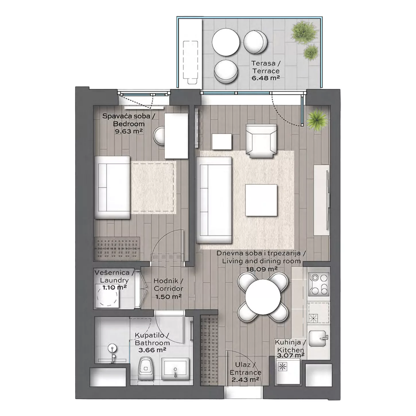 Pristup ulaznom lobiju je planiran kako iz javne ulice sa saobraćajem, tako i iz unutrašnjeg dvorišta, a u njemu će se nalaziti recepcija, obezbeđenje, poseban prostor za poštanske sandučiće, kao i kutak za higijenu vaših kućnih ljubimaca. Stambeni ulazi su naglašeni kroz arhitektonsko rešenje, dok jedinstvena etaža i organizacija hodnika pruža osećaj malog, neposrednog komšiluka.