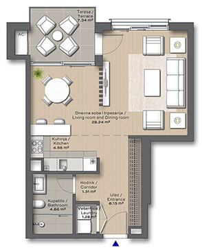 Svi stanovi imaju kuhinju otvorenog plana za lagodnije organizovanje svakodnevnih porodičnih okupljanja, dok visoki prozori od poda do plafona u stan unose obilje dnevne svetlosti i svežeg vazduha.