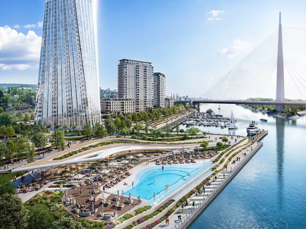 Predstavljamo novo poglavlje života uz Savu! Belgrade Waterfront Marina obuhvatiće savremeni yacht club sa otvorenim bazenom na obali, dom opere, panoramski točak Belgrade Eye, produžetak Sava Promenade, uz novu arhitektonsku ikonu visoku oko 120 metara.