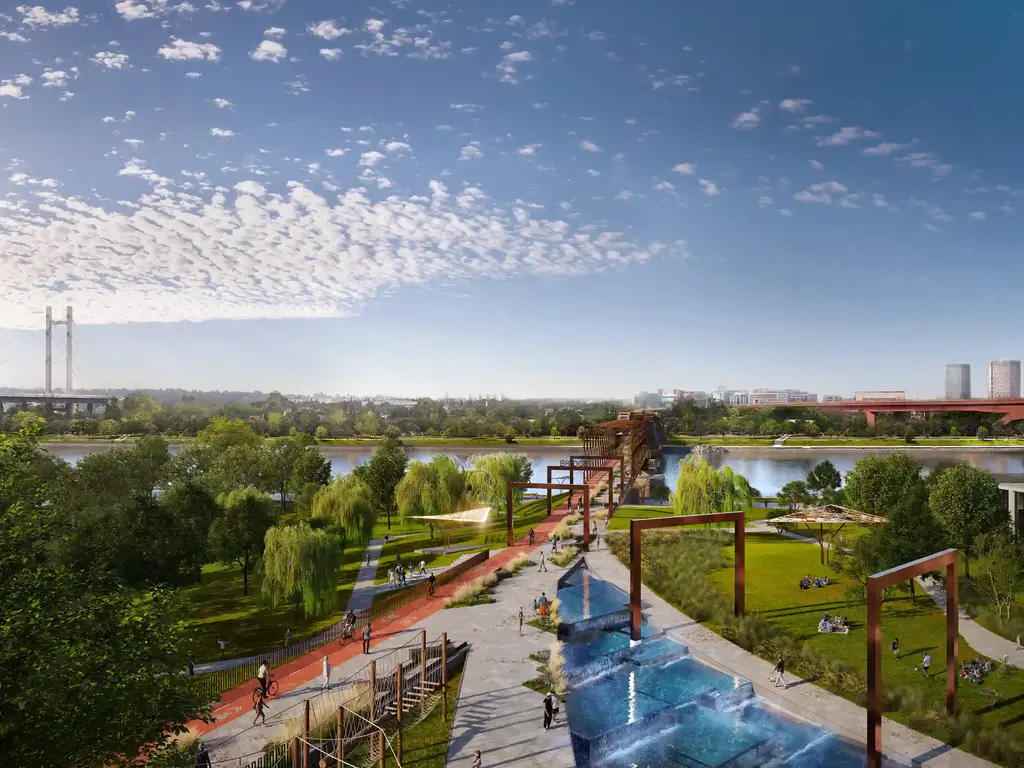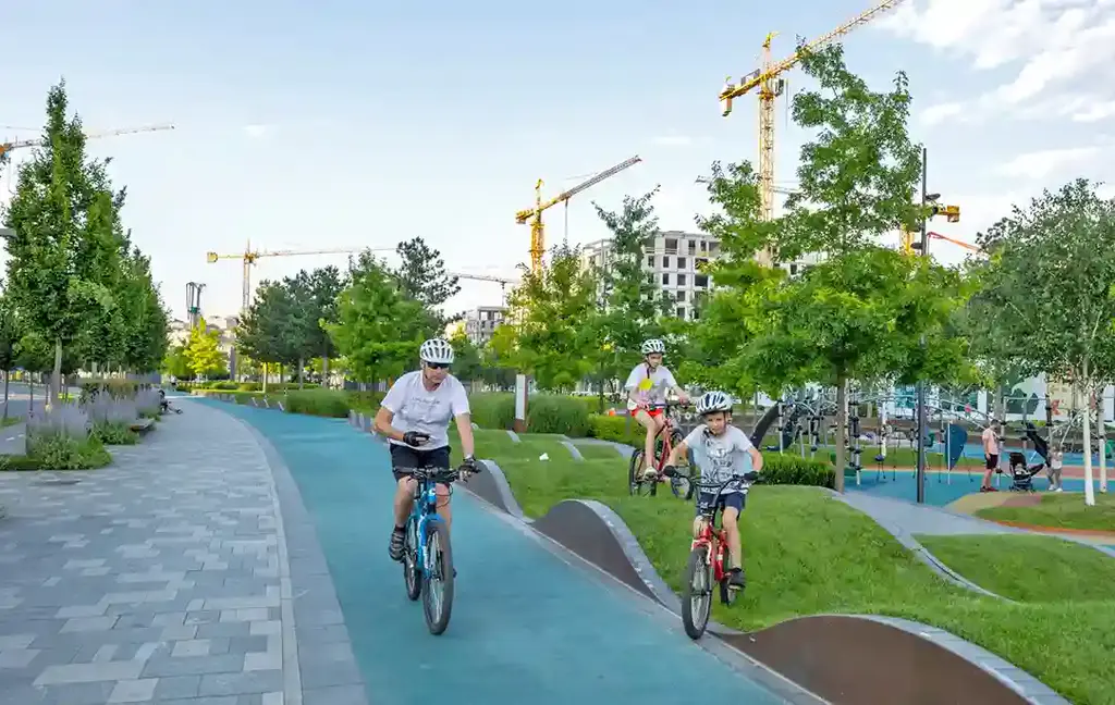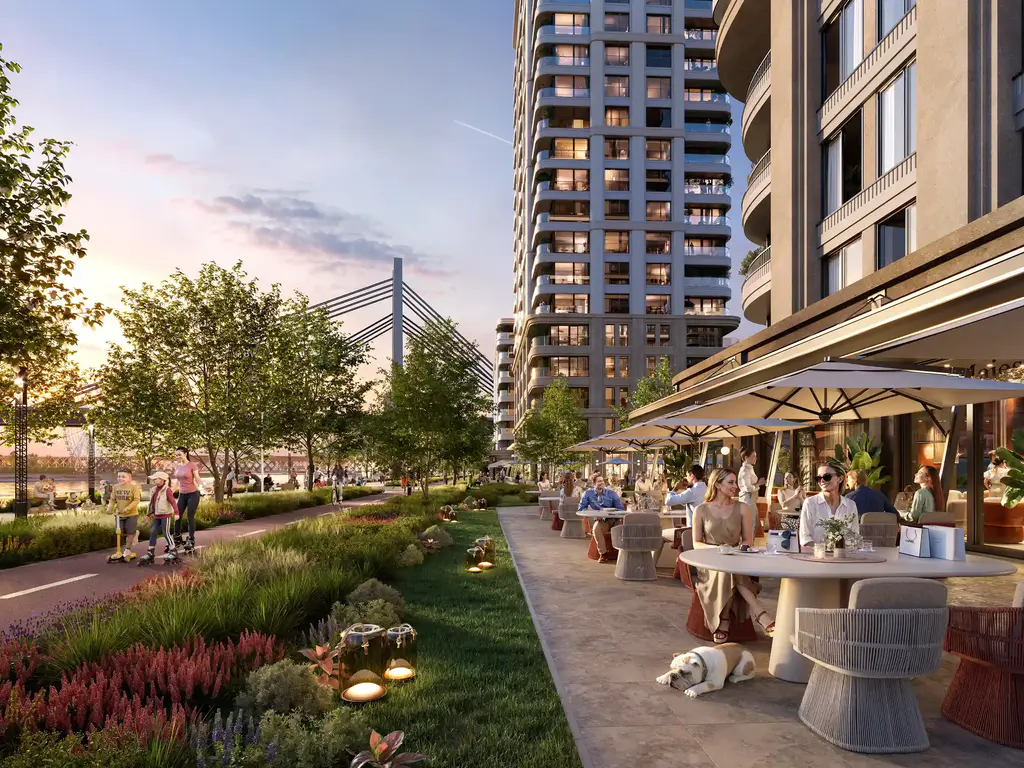 mesto okupljanja u okviru projekta. Posebnu vrednost čine šetališta uz reku, uključujući linijski park Zelena pruga, koji povezuje obale Save i Topčiderski park, stvarajući prostrane površine za šetnju, rekreaciju i boravak na otvorenom, uz nove biciklističke staze.