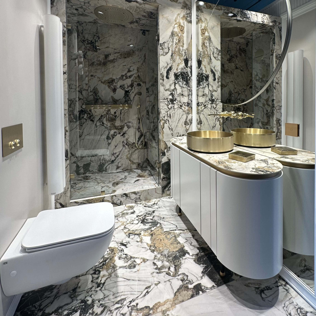 U salonu možete osetiti kako je biti jedno sa enterijerom koji je opremljen elementima renomiranih brendova kao što su Florim, Gessi, Flaminia, Catalano, Mutina, Fantini, Appiani, Jacuzzi i drugih vodećih svetskih proizvođača.